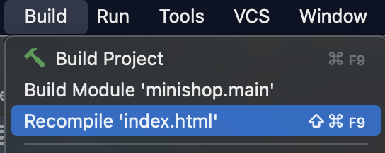 intelliJ 컴파일 방법 : 메뉴 build -> Recompile